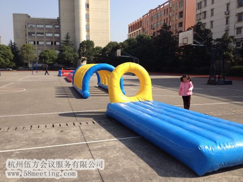 活動現場已經擺好了今天的趣味活動的道具,就等運動員們入場啦!