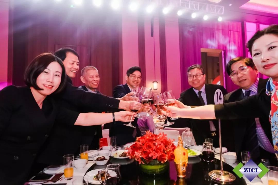 嘉賓們?cè)谕硌缟嫌淇旖涣鞑⑴e杯慶祝