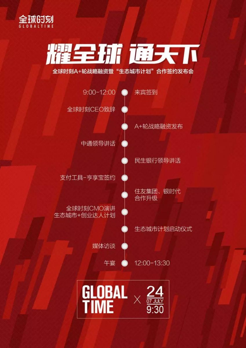 “耀全球 通天下” — 全球時刻 A+ 輪戰(zhàn)略融資暨“生態(tài)城市計劃”合作簽約發(fā)布會-會議會展活動策劃案例-杭州伍方會議服務有限公司
