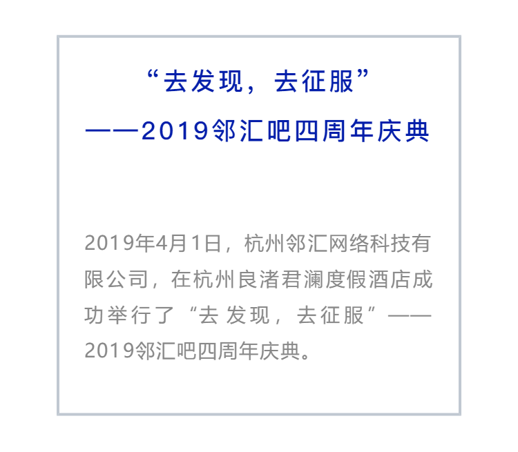“去發(fā)現(xiàn),去征服”——2019鄰匯吧四周年慶典-會議會展活動策劃案例-杭州伍方會議服務有限公司