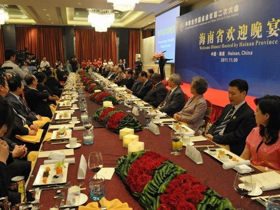 中非合作圓桌會(huì)議第二次大會(huì)在萬寧開幕。9日晚上,海南省政府在萬寧石梅灣舉行盛大招待晚宴,招待來自非洲的嘉賓及各界客人。