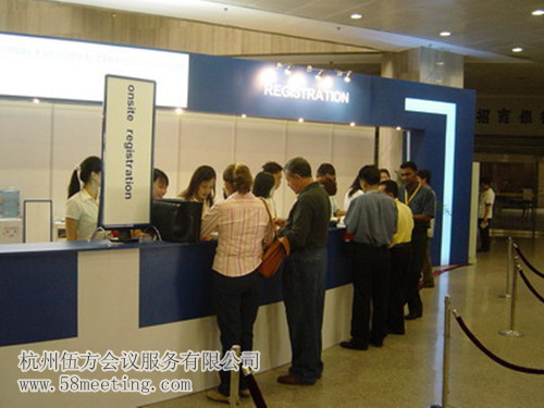 注冊臺是保證現(xiàn)場注冊順利的重要條件之一,會議組織者應該多次到會議舉辦地點認真考察,制定出合理的搭建方案。