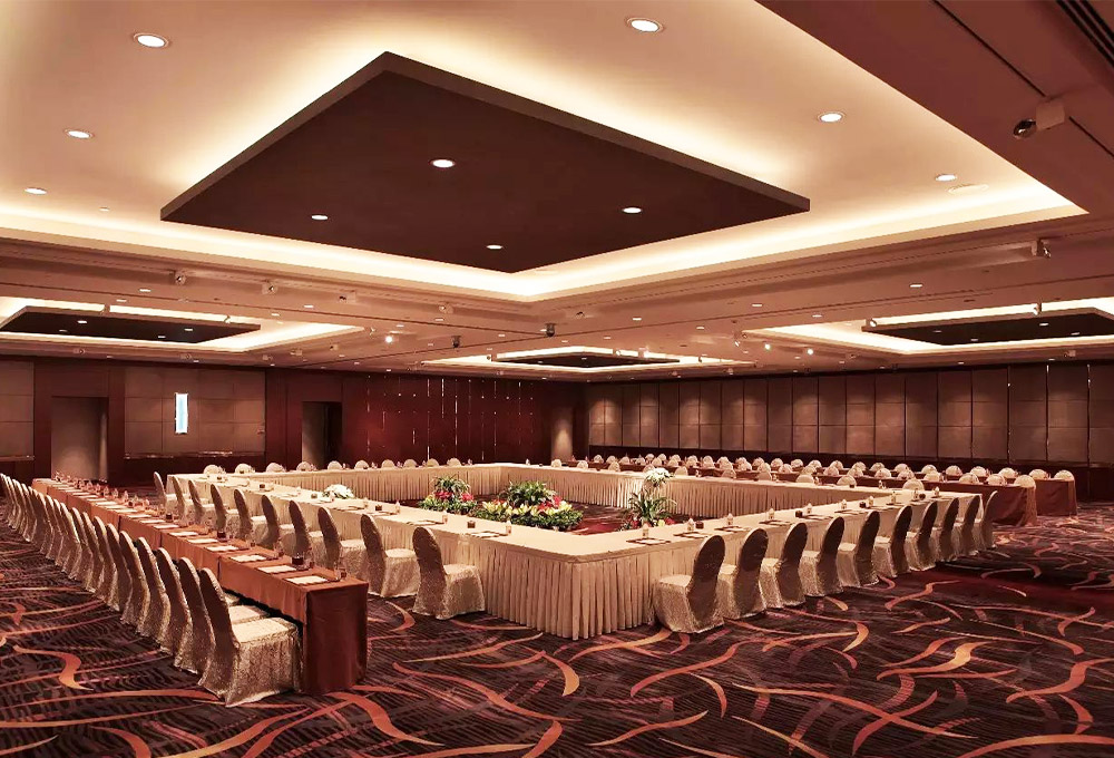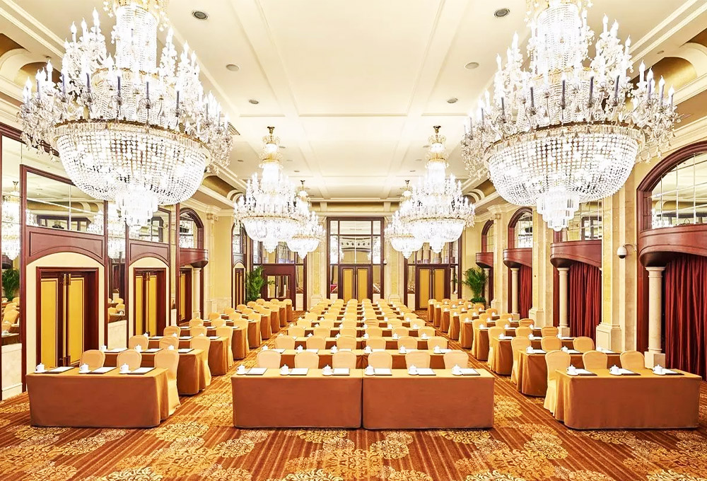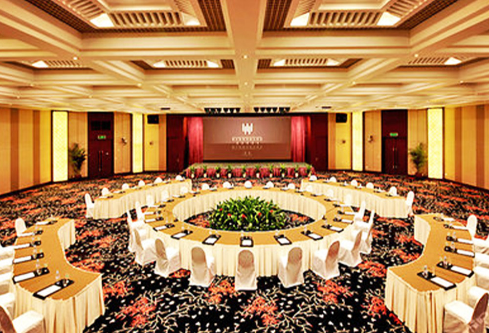 酒店擁有1780平方米的無柱式超大宴會廳、可容納千人的劇院式報(bào)告廳、城中獨(dú)有的環(huán)形峰會式會議廳、新聞發(fā)布廳和20多個(gè)不同規(guī)模的中小型多功能廳,為各種規(guī)格會議以及婚宴提供多樣化選擇。